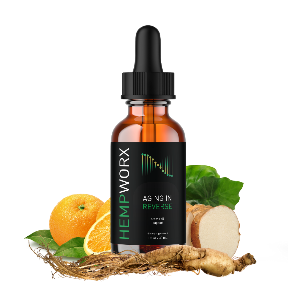 Turn back the clock with HempWorx Aging in Reverse Stem Cell Oil, an advanced wellness formula that supports stem cell activation, cellular repair, and vitality. Infused with Broad Spectrum CBD, Wild Yam, Korean Ginseng, Vitamin C, and other powerful botanicals, this formula helps strengthen immune function, promote collagen production, and support tissue regeneration. Designed to enhance recovery, improve stamina, and promote youthful-looking skin, it works from the inside out to restore balance and vitality. With consistent use, Aging in Reverse may help reduce the appearance of wrinkles, improve energy and focus, and support long-term cellular health. Free from common allergens, this innovative oil is your key to resilience, recovery, and radiance.